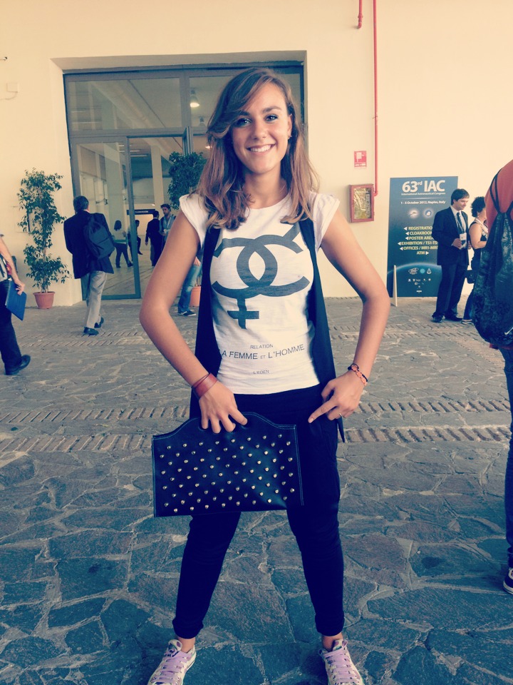 23 studenti della mia scuola sono stati invitati al 63° congresso aerospaziale, tenuto alla mostra d’oltremare sita a Napoli. La cosa è stata davvero molto interessante, abbiamo seguito degli esperimenti sulla gravità, sui raggi infrarossi e sul cambiamento di pressione. Una buona parte degli “scienziati” erano tedeschi e non conoscevano l’italiano, quindi abbiamo comunicato in inglese. Per la giornata ho indossato tuta nera, t-shirt “Smile” con stampe nere con sopra un gilet nero e ovviamente all-star con fantasie