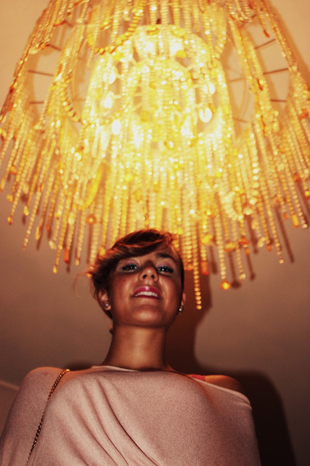 This is my last outfit. That’s quite elegant thanks to a skirt that is of the same colour of sand. This can be worn both in the morning (for example for a luch) and for a party in the evening. I played the skirt down with a large cotton pink sweather. I wore a purple vest and purple shoes.