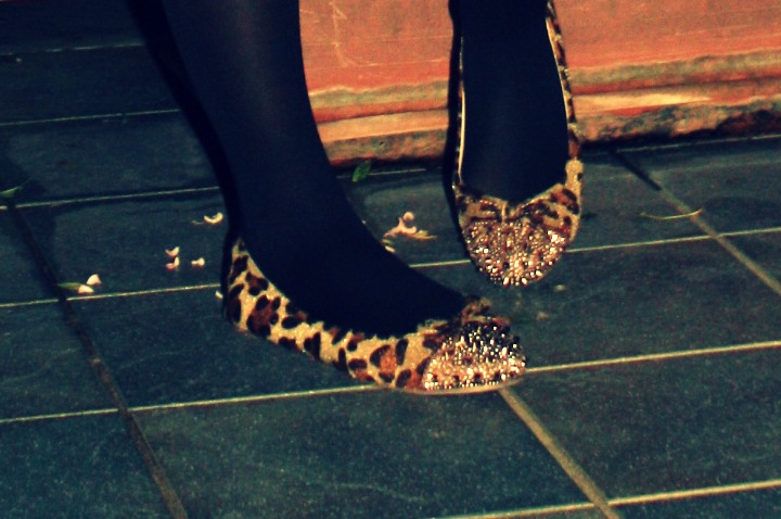 Ed infine un paio di ballerine maculate con borchie e brillantini.
