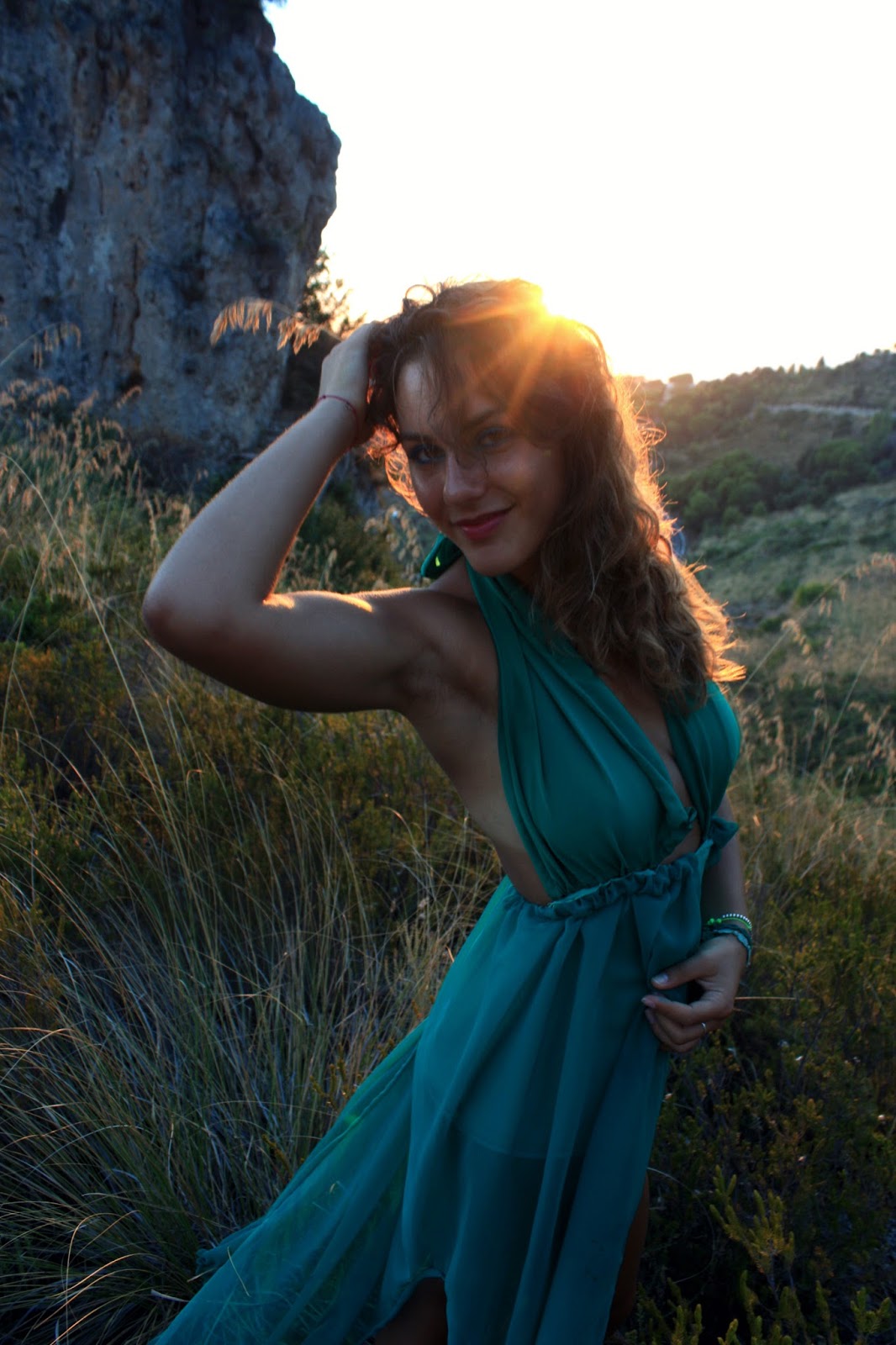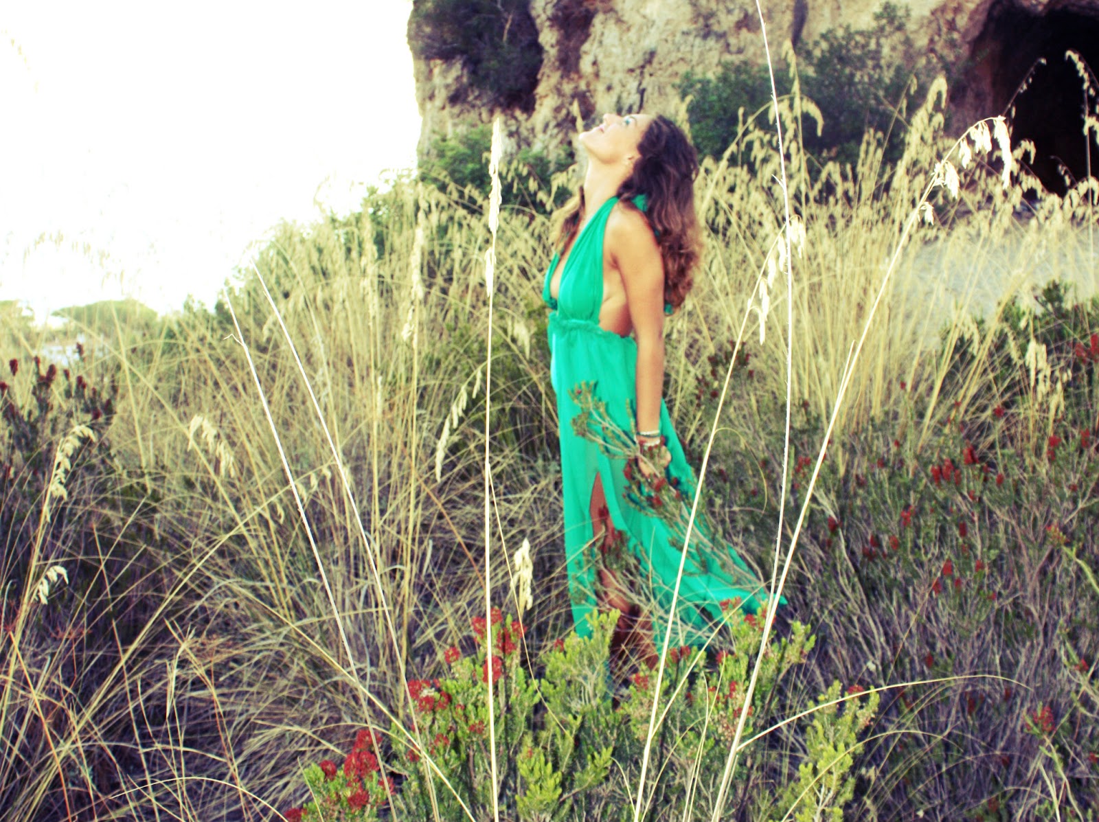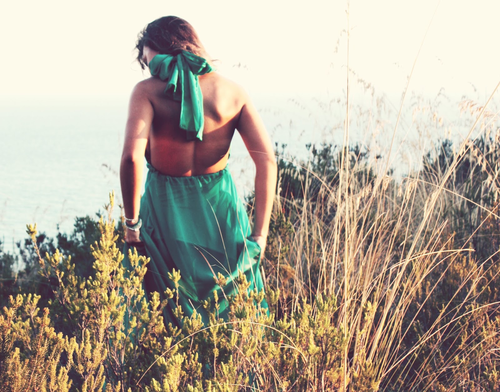 Qualche tempo fa ho realizzato il mio primo abito. E’ verde, lungo, in tessuto semitrasparente e si allaccia con un grande fiocco dietro la schiena. Ho scattato queste foto a Sperlonga, in provincia di Latina, tra la terra ed il mare.