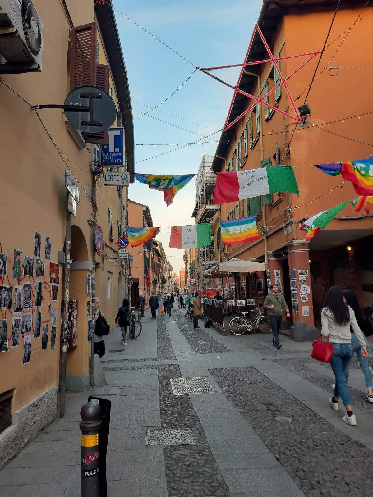 Aspettavo il venticinque aprile duemilaventi da quando il venticinque aprile duemiladiciannove ad una latitudine un po’ più bassa rispetto all’anno precedente mi trovavo a pensare nostalgicamente al venticinque aprile duemiladiciotto. Dico nostalgicamente perché, nonostante fossi immersa in una morbida emulsione di cose belle, mi sarebbe piaciuto esserci ancora una volta. A fare cosa? A celebrare la libertà. Dove? Nella strada che ci accoglie e ci Raccoglie sempre, senza giudicare la nostra ignoranza o l’ubriachezza, il nostro essere inopportuni e fuoriluogo, i nostri vestiti ed i nostri amanti. In quel giorno lei, via del Pratello, si colora di cremisi e si veste di un’ondata di persone che l’attraversano e la fanno vivere più di qualunque altro giorno dell’anno e che si perdono in degli ideali in cui però credono ogni secondo della loro vita. Non importa quanto tu sia organizzato il venticinque aprile, è statisticamente provato che appena ci sei dentro a quell’ondata di persone, perderai gli amici con cui hai previsto di trascorrere la giornata ogni cinque minuti e che alla ventesima birra intervallata qua e là da qualche amaro o spritz smetterai di porti il problema di cercarli perché sarai ormai confidente di conoscere qualunque persona tu incontri sulla tua strada. Che tu la conosca per davvero oppure no, a nessuno è dato saperlo, ma la cosa bella è che, in effetti, a nessuno importa.