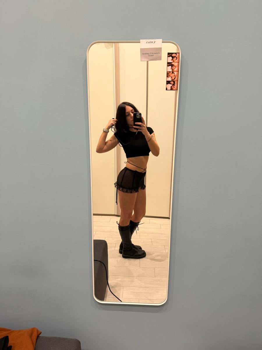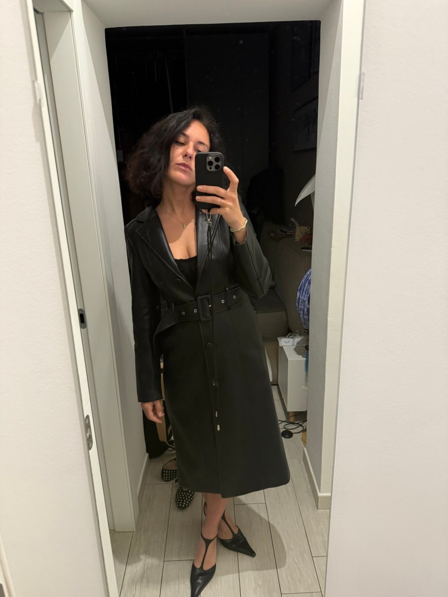 Quasi quasi ora provo il vestito e controllo di averlo ricucito per bene. Metto via i pantaloni e la felpa in pile ed incastro testa e le braccia nella stoffa nera. Tiro giù e vado allo specchio. Mi volto a destra. Poi a sinistra. Poi cerco di osservare la parte posteriore. L’ago non ha lasciato lembi disgiunti, finestre socchiuse sulla pelle nuda, ed il vestito può tornare ad essere appeso con gli altri. Prima però metto su un paio di anfibi perché per un momento voglio ricordare cosa si prova ad essere pronti per uscire.